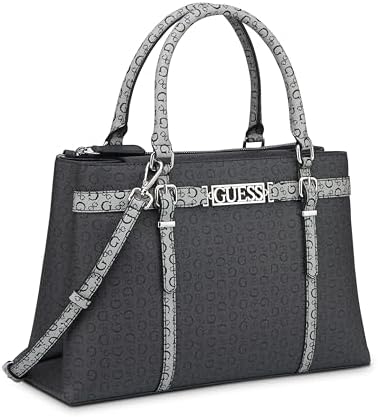 El bolso GUESS Noelle II Luxury Satchel es un accesorio elegante y versátil, diseñado para la mujer moderna que busca combinar estilo y funcionalidad. Con silueta mediana tipo satchel, viene con asas superiores para llevar en la mano y una correa desmontable para usarlo al hombro o cruzado. Fabricado en materiales de alta calidad (piel sintética poliuretano de acabado premium), presenta herrajes dorados, detalles de diseño refinado y el icónico logo metálico de GUESS en su parte frontal.